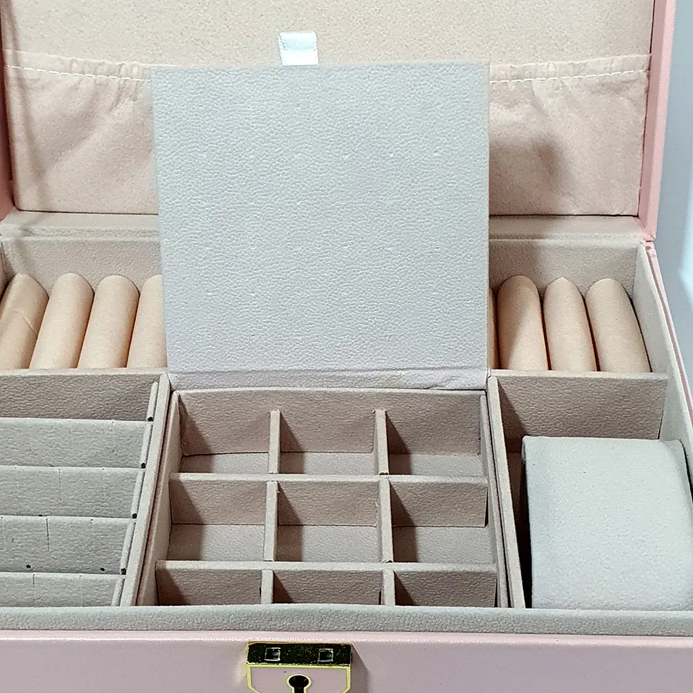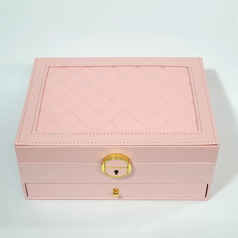 Стильная розовая шкатулка с обивкой под кожу, замком и выдвижным ящиком. Идеальна для аккуратного хранения украшений в одном месте. Отличный подарок.