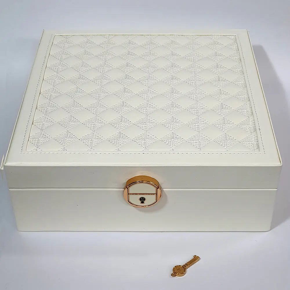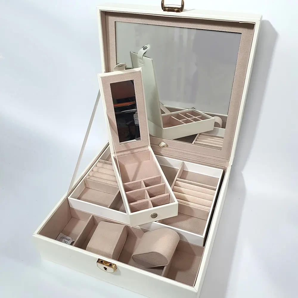 Элегантная шкатулка для украшений с большим зеркалом, множеством отделений и выдвижным модулем. Подходит для хранения колец, серёжек, браслетов и часов. Замок с ключом. Идеальный подарок для женщин.
